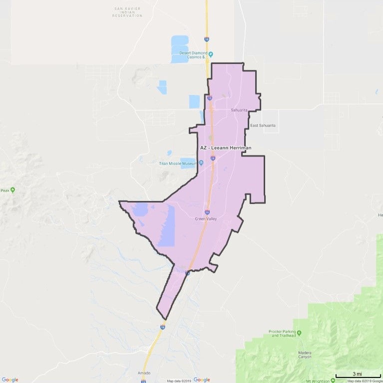 West: N. Thornydale Rd at W. Cortaro Farms Rd on the north. Headed south along N. Thornydale Rd. to W. Magee Rd. Headed east along W. Magee Rd. to Canada Del Oro Christina Taylor Green Memorial River Park. Headed south along Canada Del Oro Christina Taylor Green Memorial River Park to W. Ina Rd. Headed east along W. Ina Rd. to N. La Cholla Blvd. Headed south along N. La Cholla Blvd to W. River Rd. Headed east along W. River Rd. to N. Oracle Rd. Headed south along N. Oracle Rd. to W. Grant Road. Headed west along W. Grant Road to N. Silverbell Road. Headed south along N. Silverbell Road to W. Congress St. on the south.