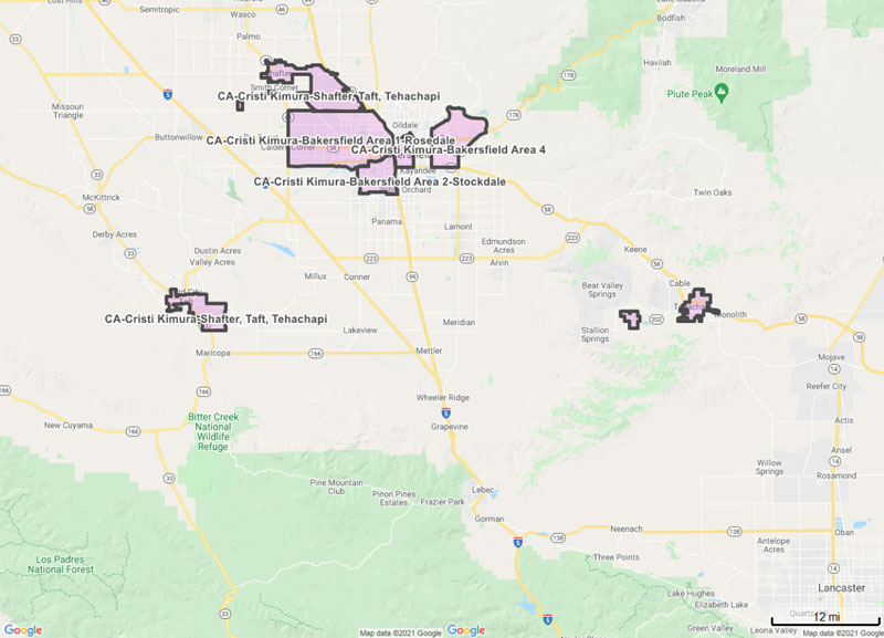 - Tehachapi…and the following portions of Bakersfield, CA.